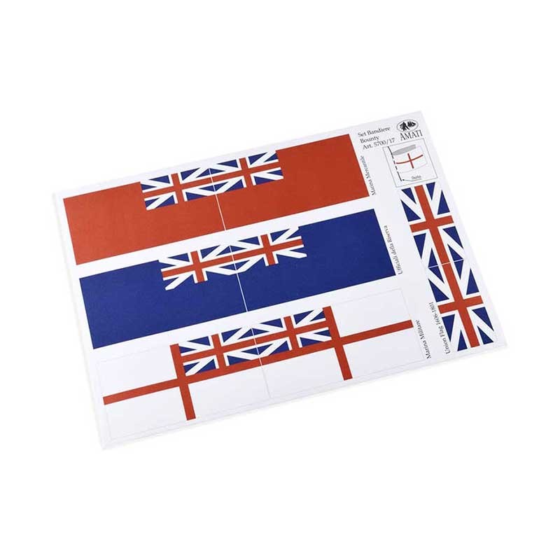 Set de banderas navales Amati 5700/17 correspondientes a la marina británica entre los siglos XVIII y XIX.
