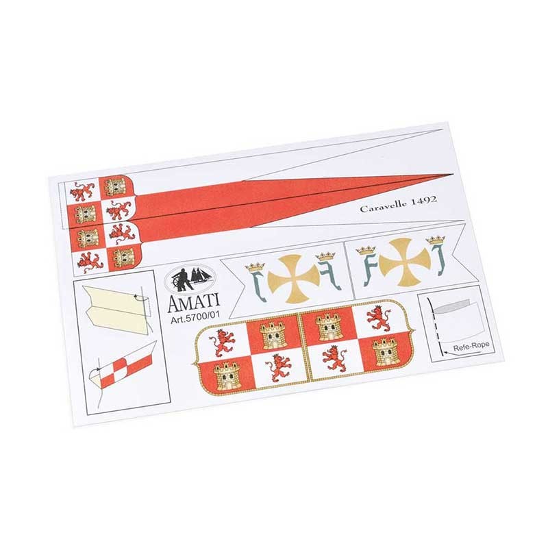 Set completo de banderas Amati a escala 1:65 para las carabelas de 1492 Santa María, Pinta y Niña.