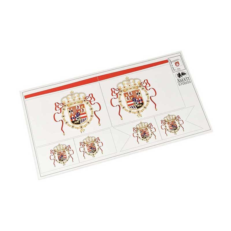 Set completo de banderas Amati a escala 1:75 para el San Felipe, galeón de guerra español de 1690.