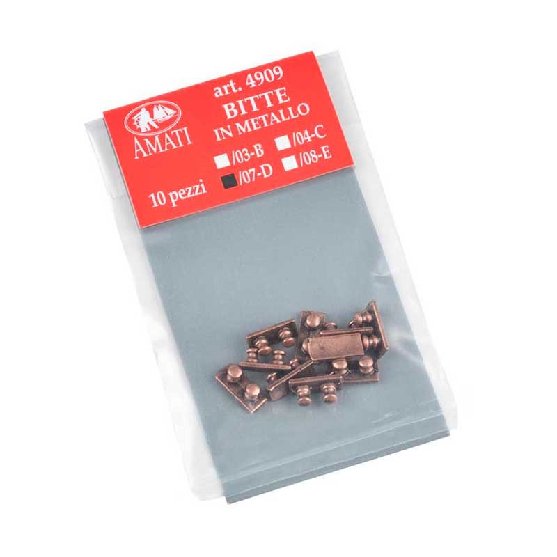 Bitas dobles tipo D de metal envejecido para modelismo naval.