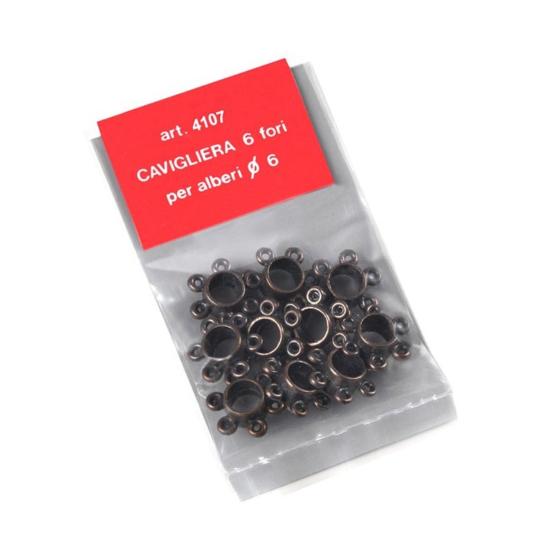 Cabilleros de metal bronceado para mástiles de 6 mm de diámetro con alojamiento para 6 cabillas.