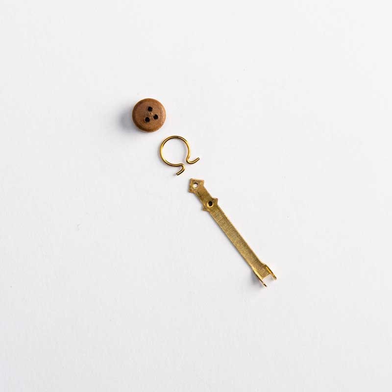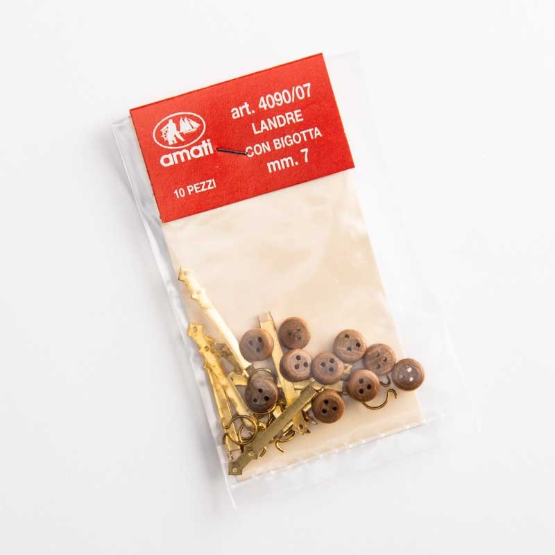 Cadenotes de latón de 35 mm de largo con vigota de madera de nogal de 7 mm de diámetro para modelismo naval.