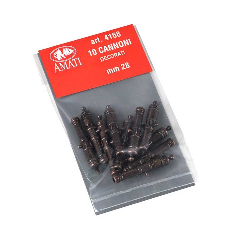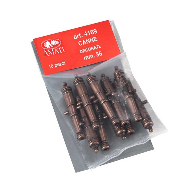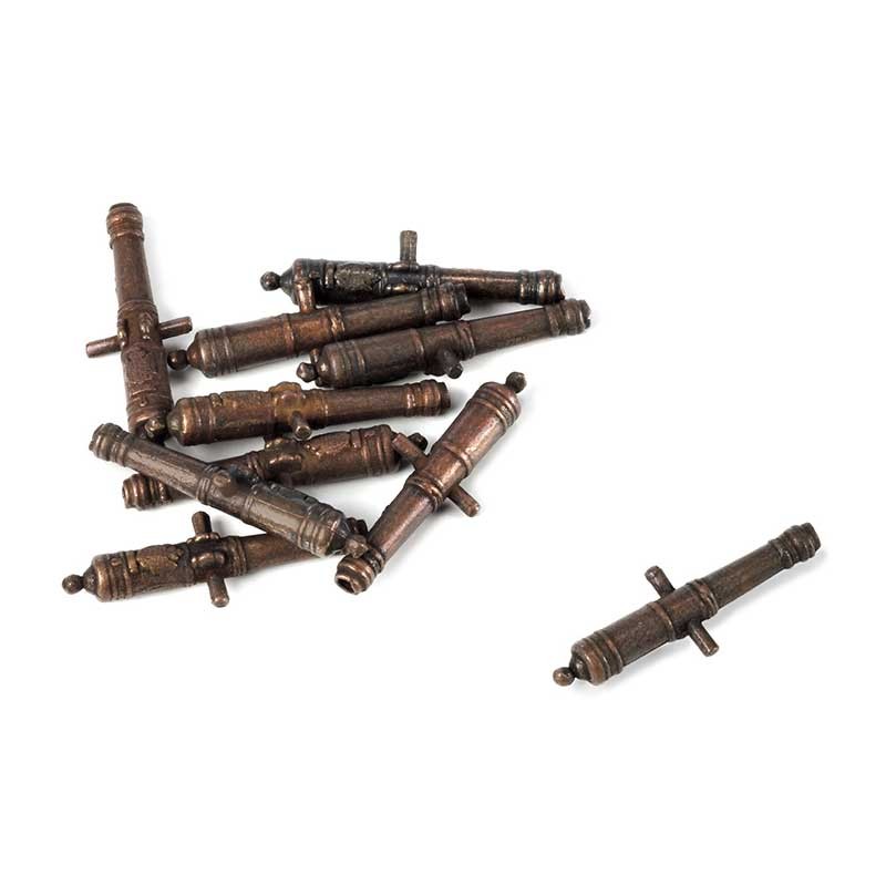 Cañones de metal decorado y acabado envejecido para modelismo naval.