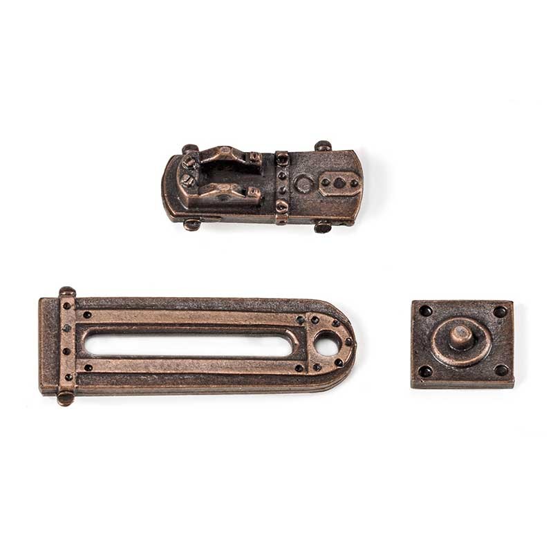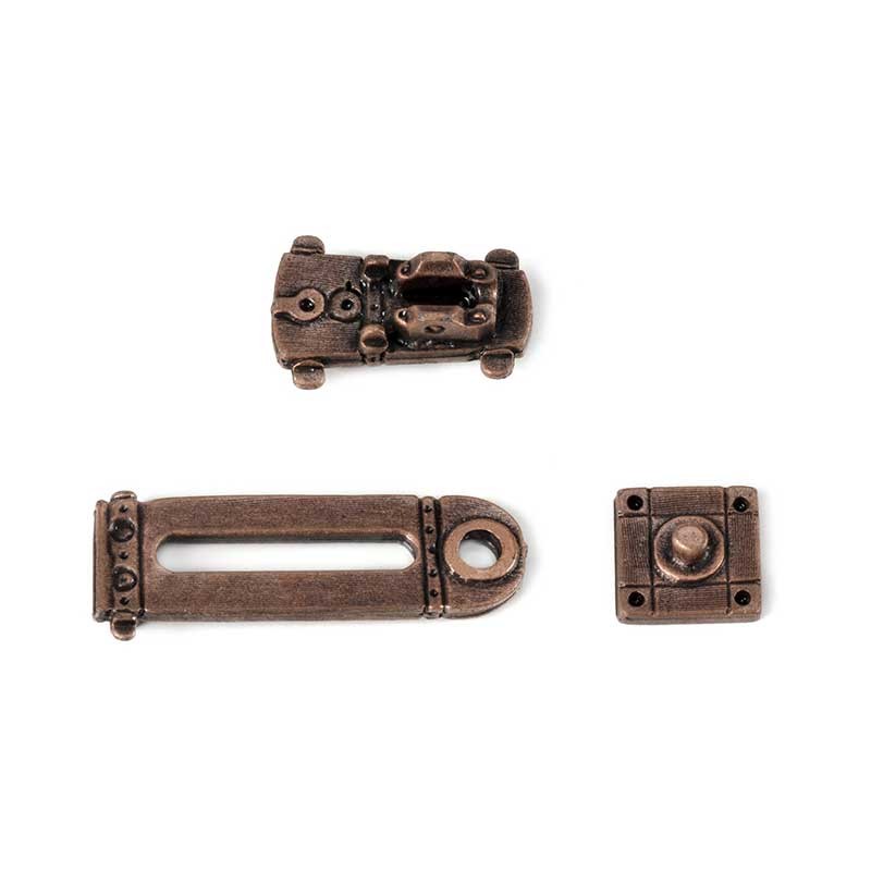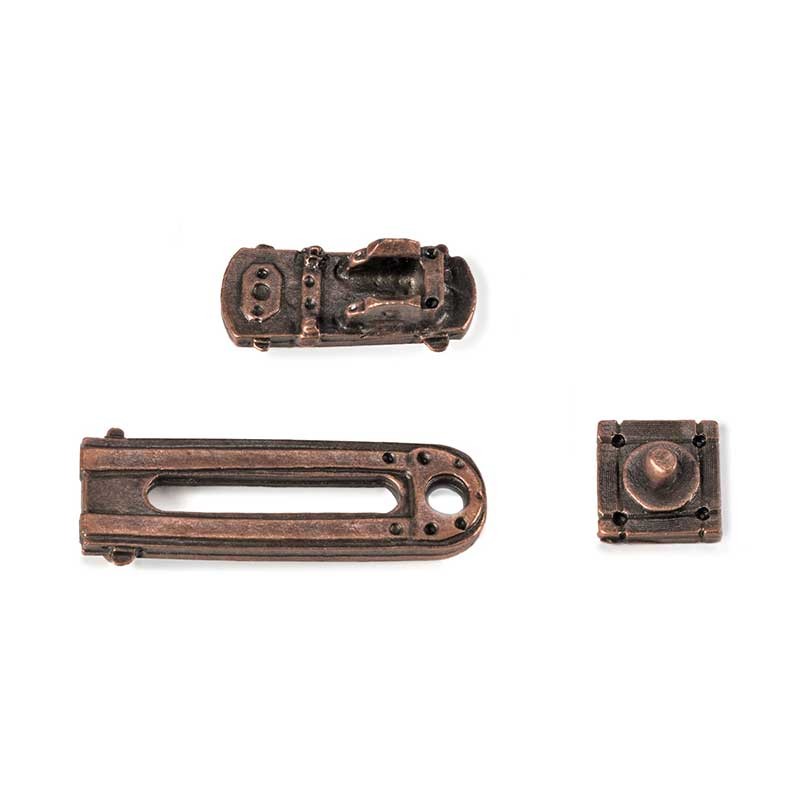 Carros para carronadas en metal bronceado acabado envejecido para modelismo naval.