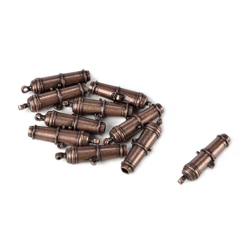 Carronadas de metal de 20 mm de largo acabado bronce envejecido para modelismo naval.