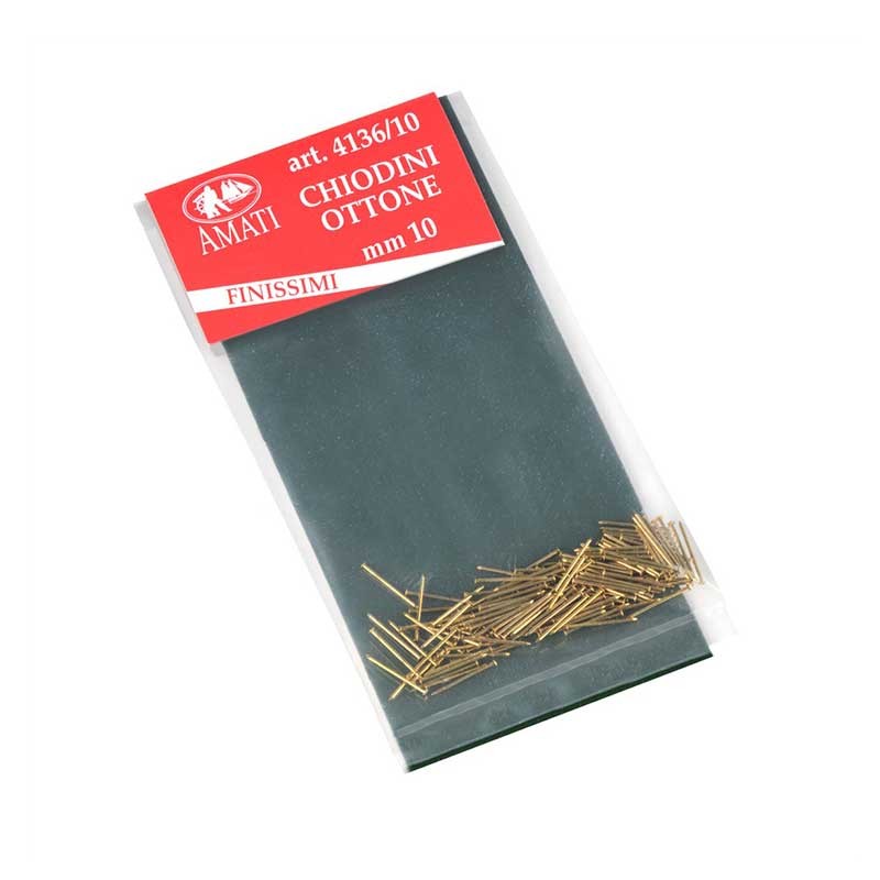 Clavos de latón extrafinos de 10 mm de largo y 0,5 mm de diámetro para modelismo naval.