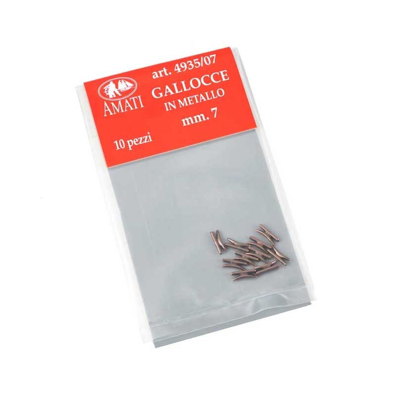 Cornamusas de metal con aspecto envejecido para modelismo naval.