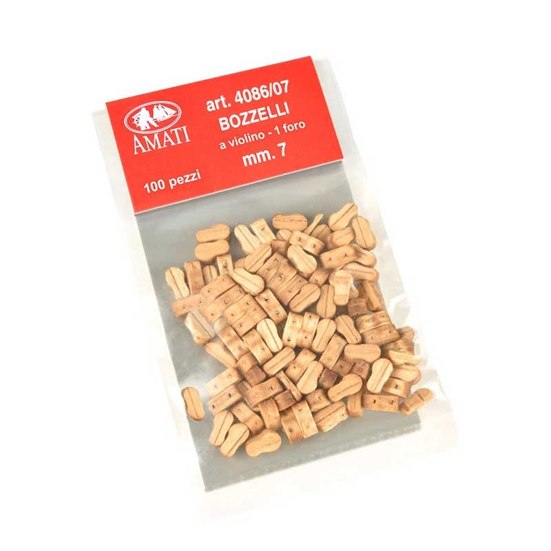 Cuadernales tipo violín en madera de nogal con 1 orificio para modelismo naval.