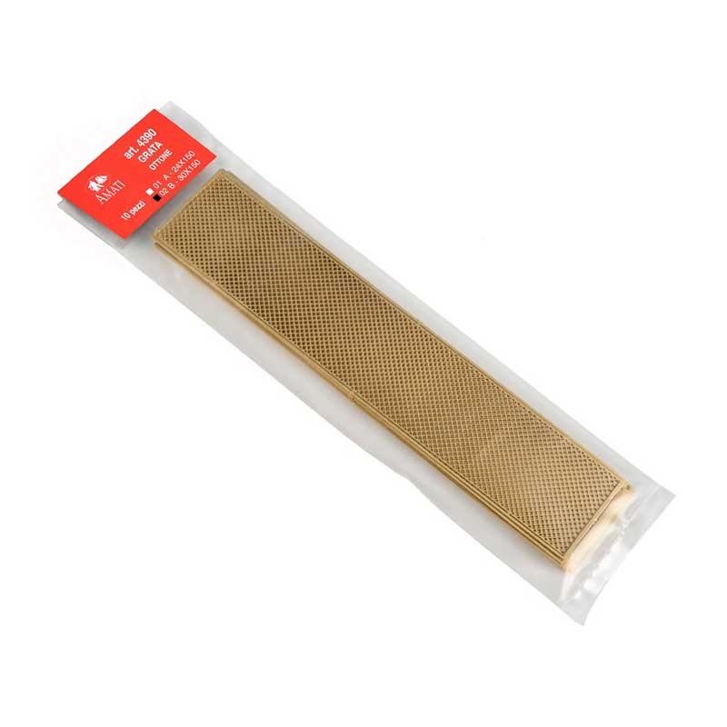 Enjaretado o celosía de latón de 150 x 30 mm con orificios en forma de rombo para modelismo naval.