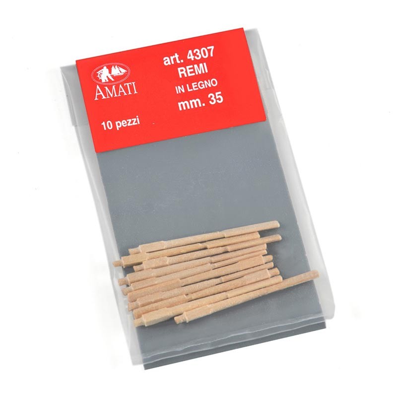 Remos de madera torneada de 35 mm de longitud para modelismo naval.