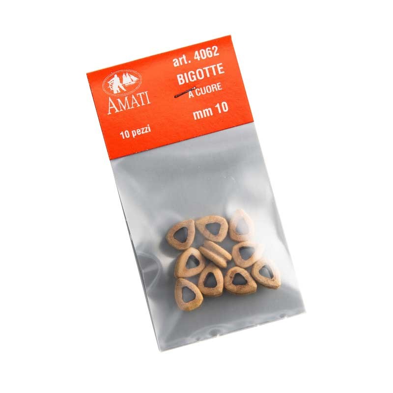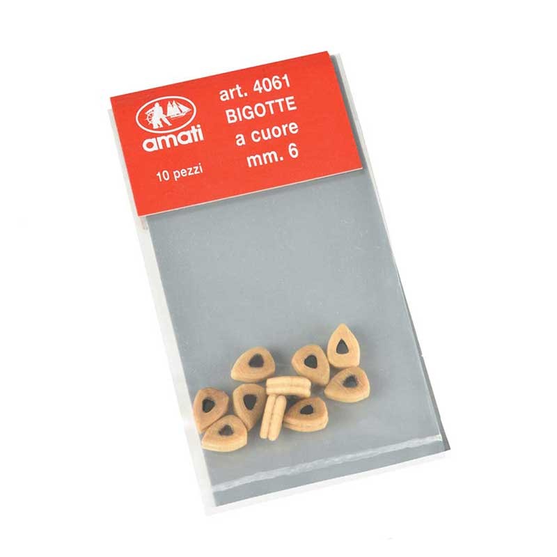 Vigotas cerradas de corazón en madera para modelismo naval.
