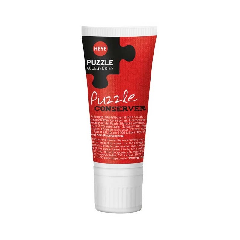 Envase de 50 ml de cola para puzzles que fija permanentemente y conserva los puzzles una vez montados. Rendimiento suficiente para 1 puzzle de 1000 piezas o 2 de 500 piezas.
