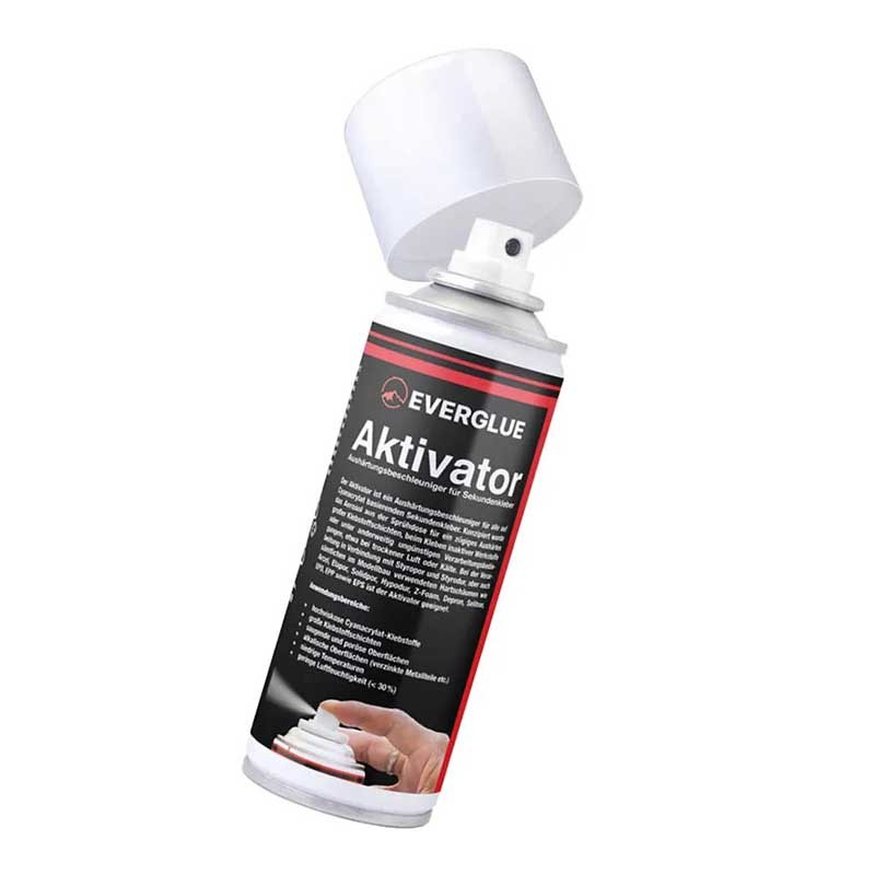 Descubre el spray activador Everglue, tu aliado indispensable para acelerar el tiempo de curado de adhesivos instantáneos a base de cianocrilato. Este spray está especialmente diseñado para ampliar las posibilidades de las aplicaciones adhesivas tradicionales. Permite el curado ultrarrápido incluso de capas extensas de adhesivo y garantiza una unión sólida en segundos, incluso en condiciones difíciles como bajas temperaturas o humedad reducida. Ideal para una variedad de materiales, este spray no solo mejora la eficiencia de tu trabajo, sino que también amplía el espectro de materiales que puedes unir con seguridad, desde poliestireno y Styrodur hasta espumas rígidas especializadas usadas en modelismo como Arcel, Elapor, Solidpor, Hypodur, Z-Foam, Depron, Selitron, EPO, EPP o EPS.