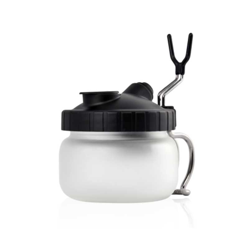 Set de limpieza para aerógrafo compuesto por un recipiente de vidrio de 250 ml con soporte para aerógrafo mas recipiente de plástico de 700 ml.