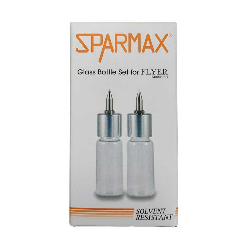 Botellas de vidrio de 15 ml de capacidad para el aerógrafo Sparmax Flyer SR. Permiten realizar cambios rápidos de color. Set de 2 uds.