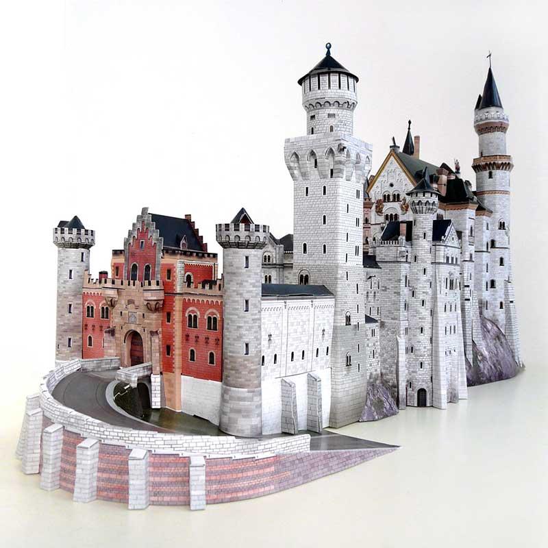 Puzzle 3D del Castillo de Neuschwanstein en Alemania, hecho de cartón impreso de gran calidad a escala 1/250.