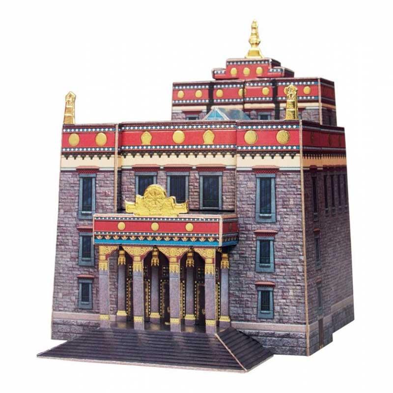 Puzzle 3D del Templo Budista Datsan Gunzechoinei en Rusia, hecho de cartón doble e impreso de alta calidad y resistencia a escala 1/200.