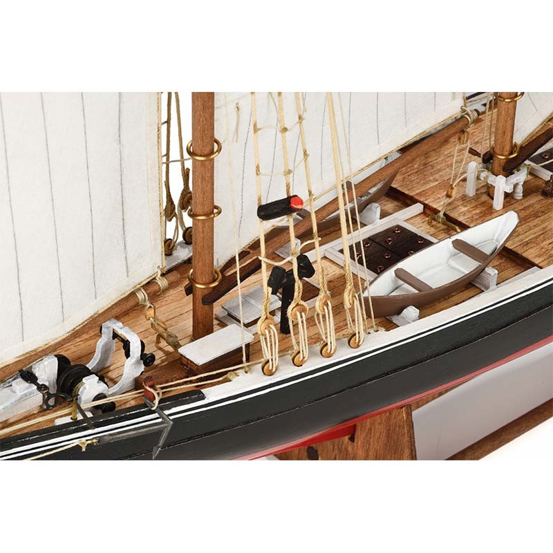 Maqueta en kit de madera del barco tipo schooner de carreras canadiense del siglo XX Bluenose, con 54 cm de eslora y escala 1:100
