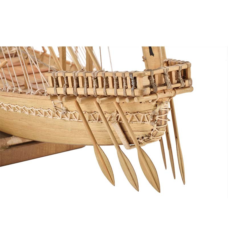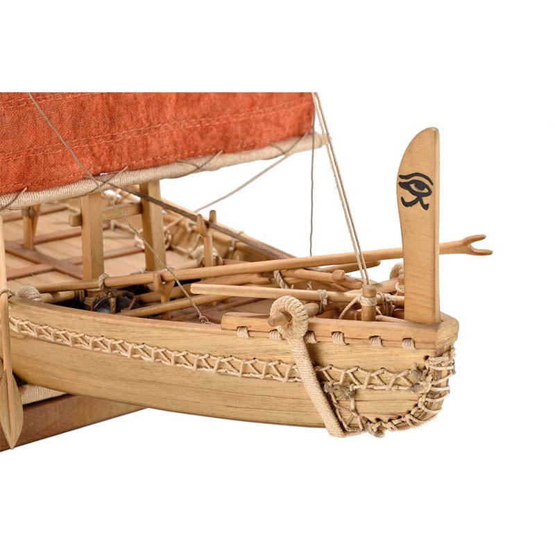 Maqueta en kit de madera y metal de un barco del antiguo Egipto con vela hecha de tela, planos de montaje, 35 cm de eslora y escala 1:50