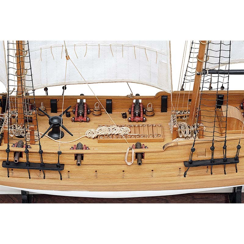 Maqueta en kit de madera y metal del barco pirata Adventure, nave característica del siglo XVIII, con 78 cm de eslora y escala 1:60