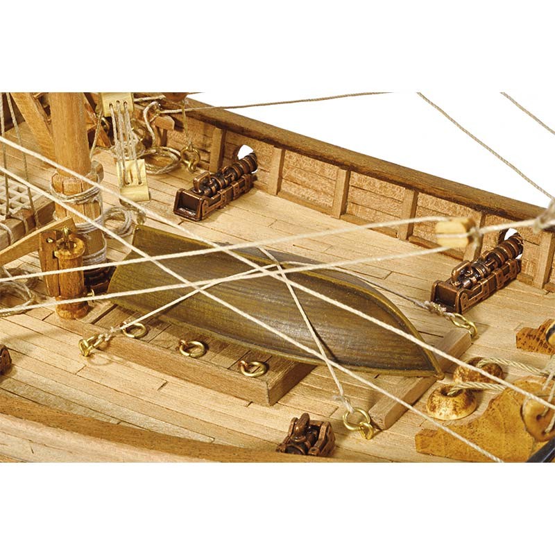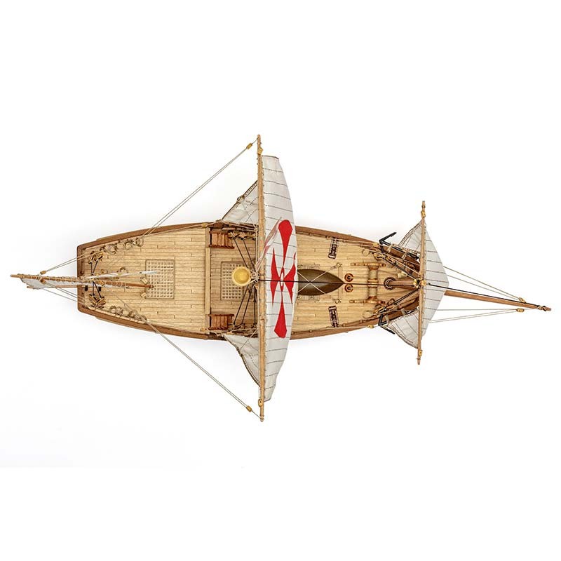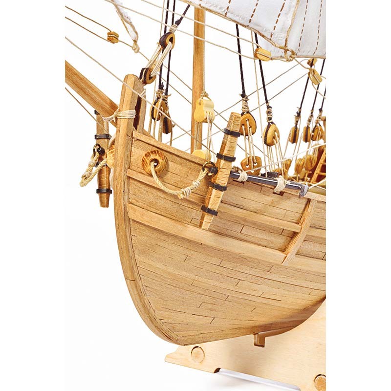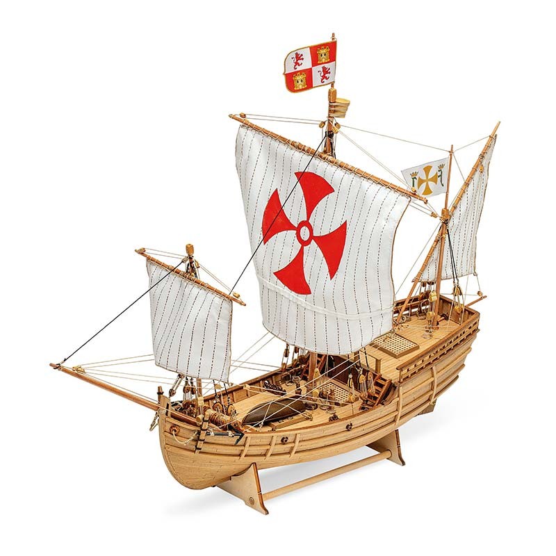 Maqueta en kit de La Pinta que utilizó Colón. Escala 1:65, eslora 45 cm, accesorios de madera y metal fotograbado, y planos de montaje.
