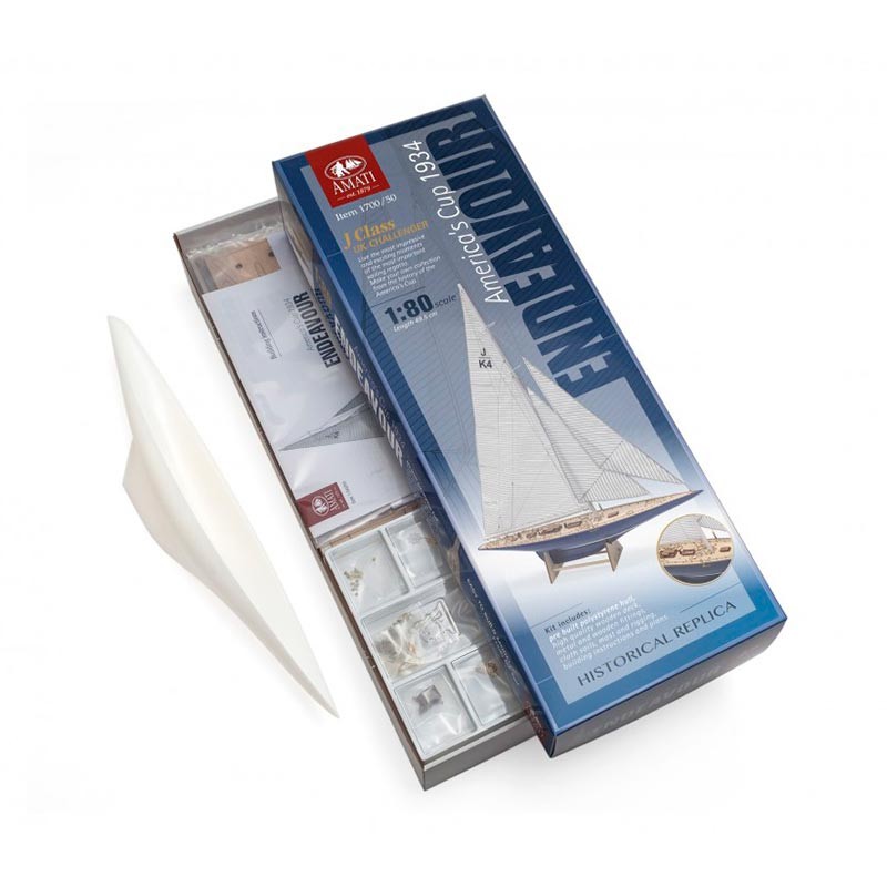 Velero Endeavour en kit con casco prefabricado de poliestireno. Réplica del barco de vela que participó en 1934 en la regata America's Cup.