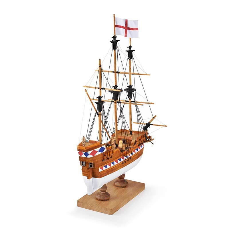 Maqueta de madera en kit de un galeón inglés isabelino a escala 1:135 de la serie First Step de Amati ideal para principiantes del modelismo.