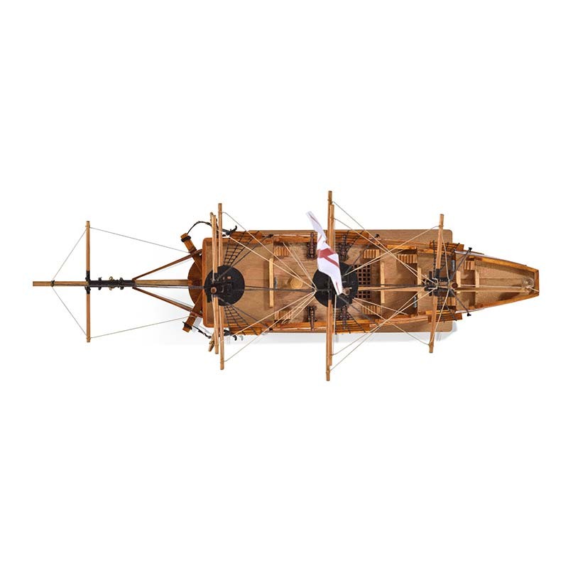 Este modelo, como los otros kits de la serie First Step, no requiere para su construcción experiencia alguna como modelista y no son necesarias herramientas especiales. Vuestra fantasía os sugerirá cómo engalanarlo con los accesorios de Amati y hacer vuestras propias decoraciones cambiando o añadiendo colores en los costados del barco.