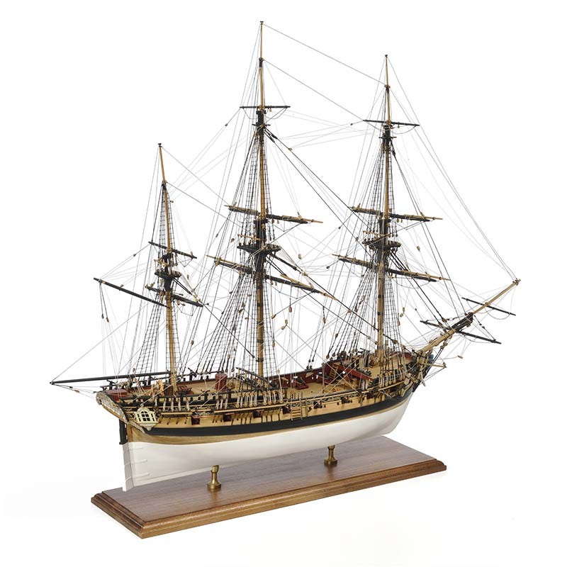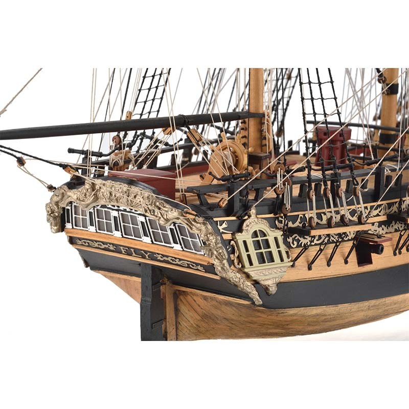 Maqueta en kit de montaje de madera y metal del barco inglés del siglo XVIII H.M.S. Fly con 80 cm de eslora y escala 1:64