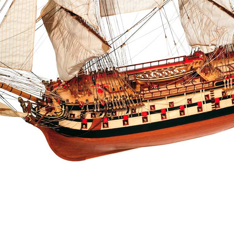 Maqueta de madera en kit del barco español Montañés, un imponente navío de línea que participó en numerosas misiones, entre ellas, en la Batalla de Trafalgar.