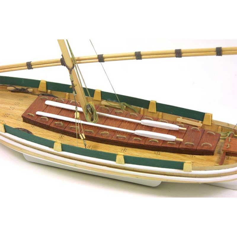 Maqueta de madera en kit de una Palangrera, barca típica del Mediterráneo con aparejo y vela latina utilizada para la pesca con palangre.