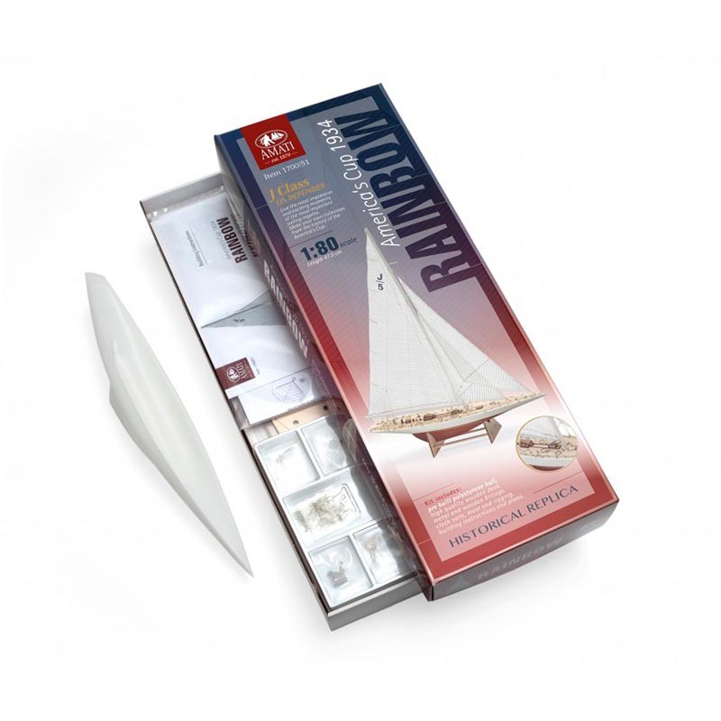 Velero Rainbow en kit con casco prefabricado de poliestireno. Réplica del barco de vela que participó en 1934 en la regata America's Cup.