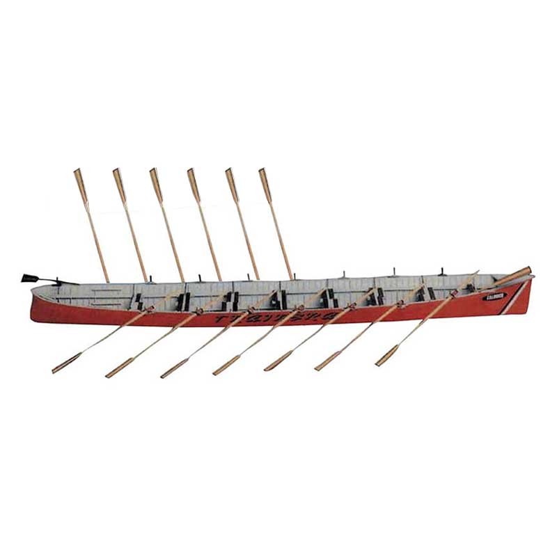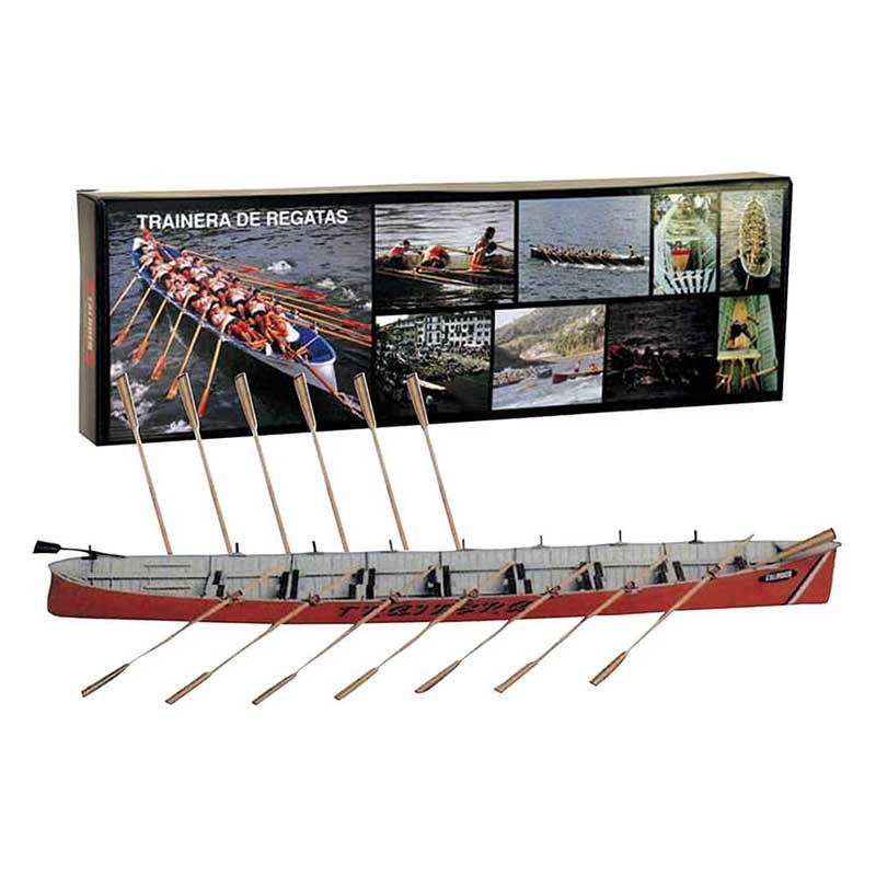 Maqueta en kit de una trainera de regatas deportiva de banco fijo a escala 1:18 en poliestireno, madera, latón y metal de fundición.