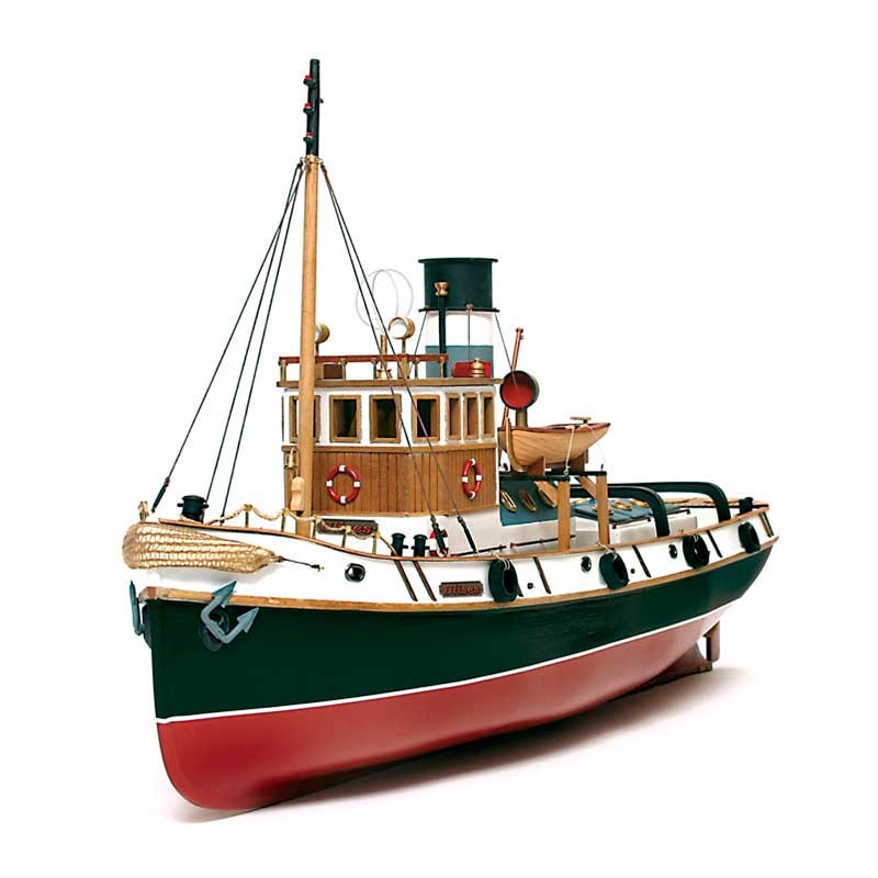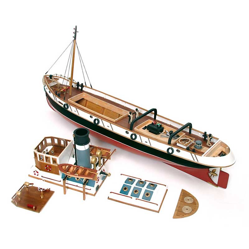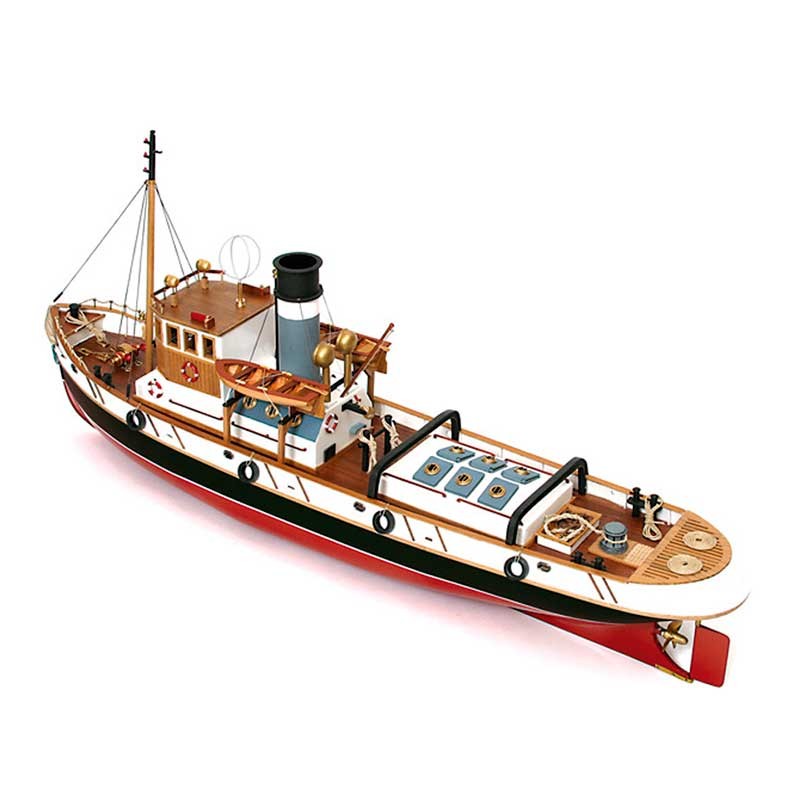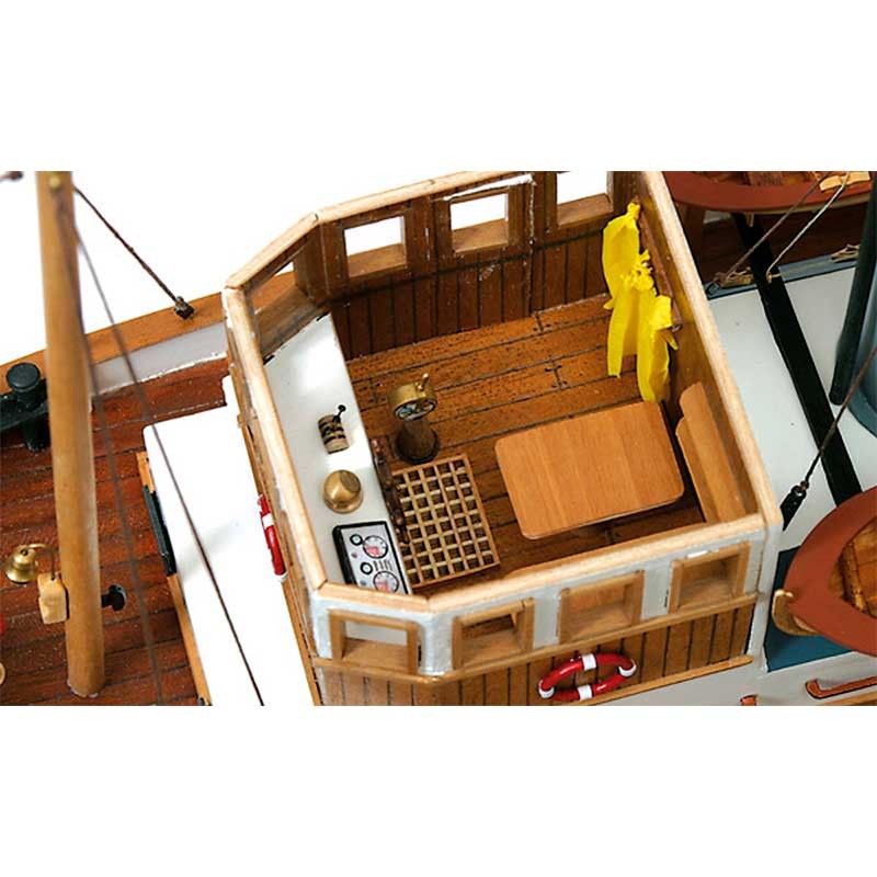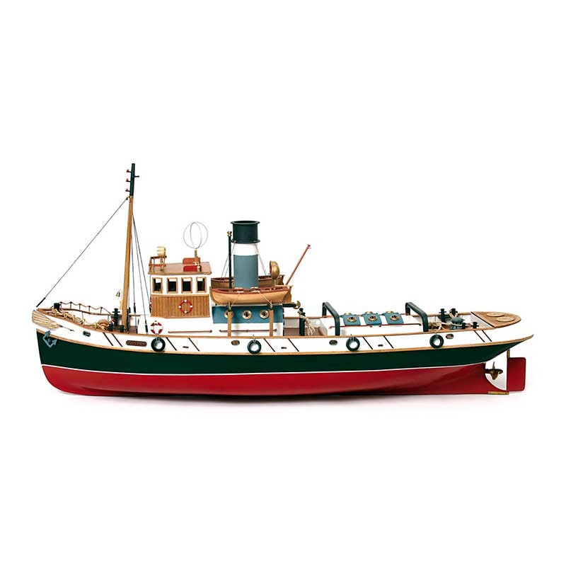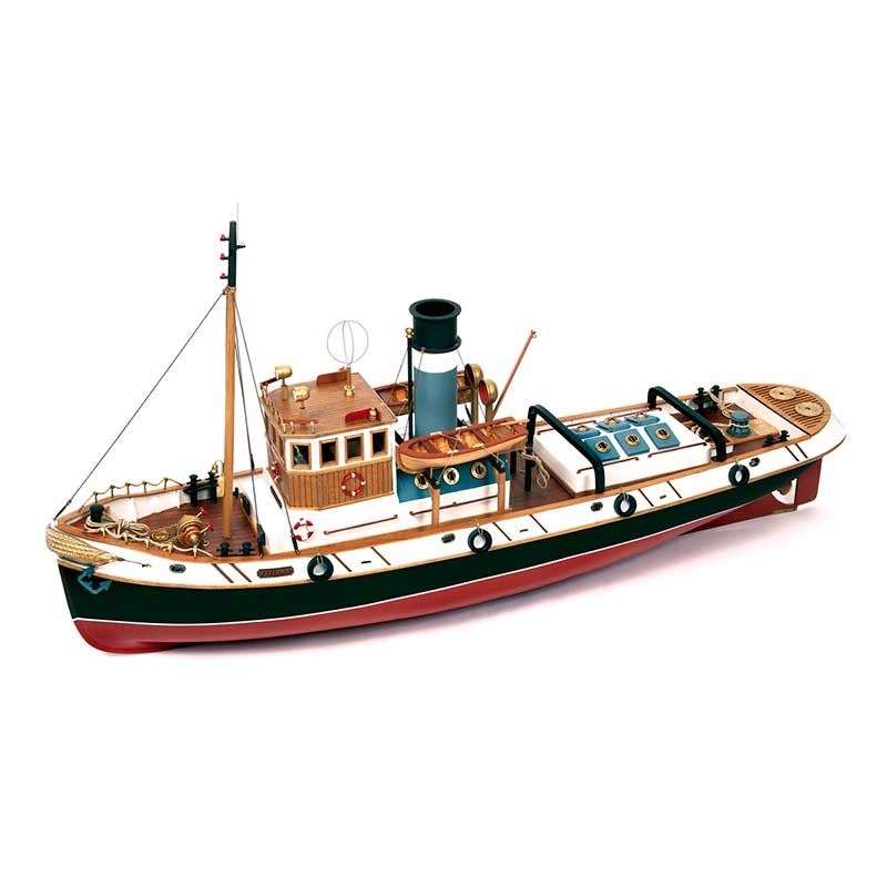 Maqueta de madera en kit a escala 1:30 del remolcador Ulises de Occre, un barco de 830 mm de eslora preparado para su conversión a radio control.