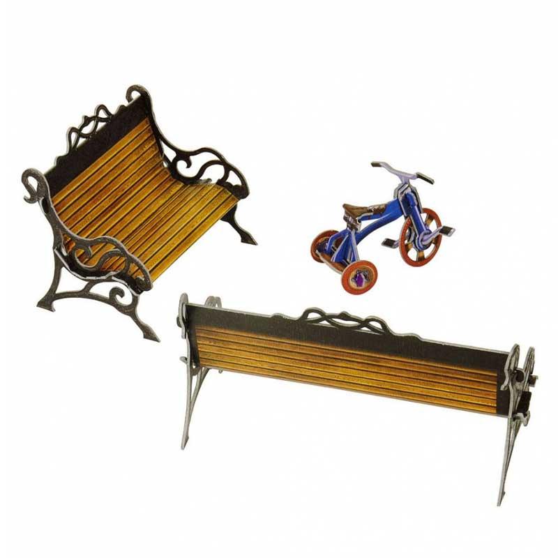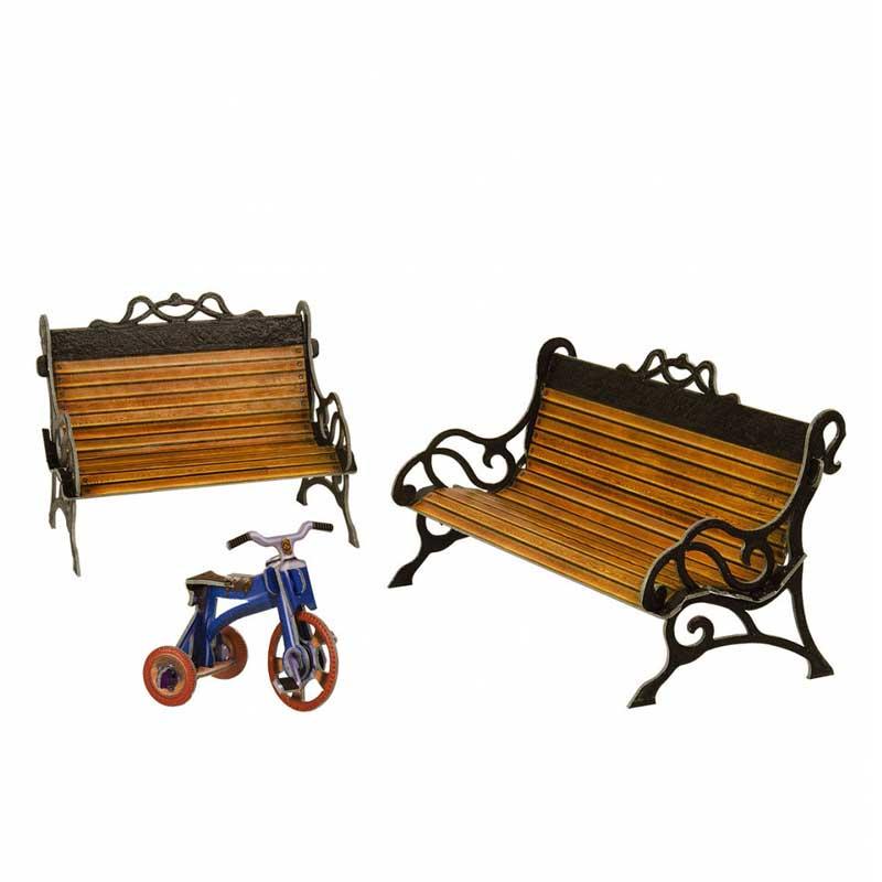Bancos de jardín siglo XIX de la serie casa de muñecas hechos de cartón impreso de gran grosor y máxima calidad y resistencia.