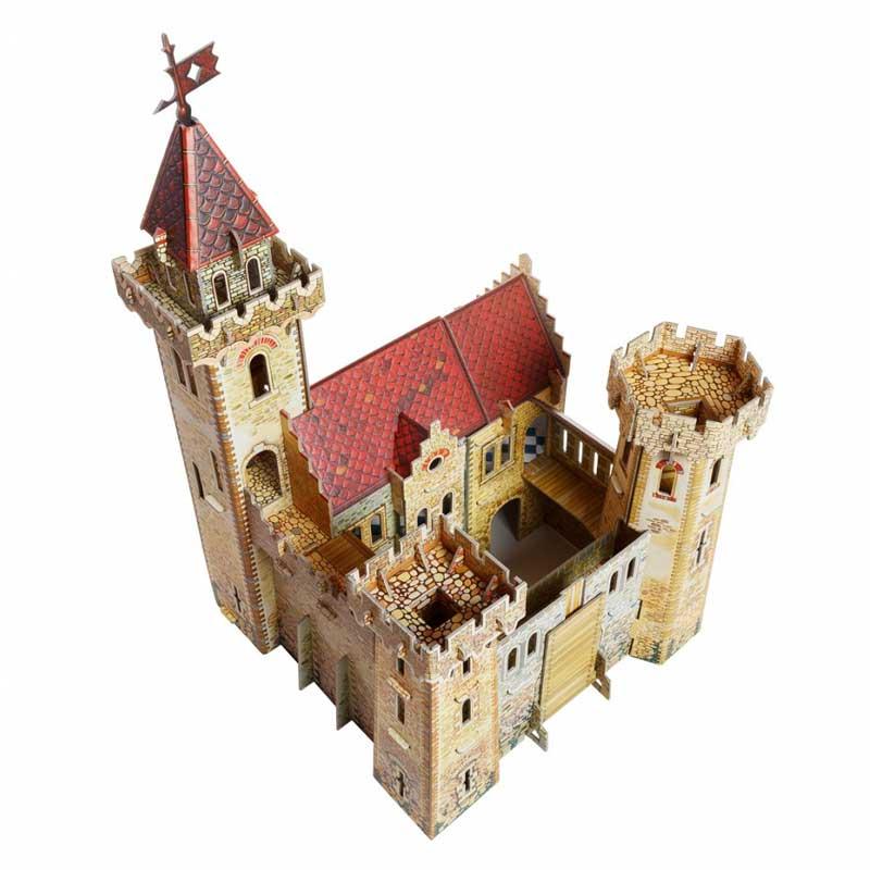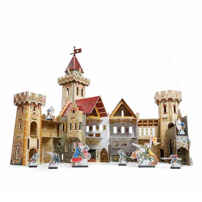 Puzzle 3D castillo del caballero serie Ciudad Medieval hecho de cartón impreso de gran grosor y máxima calidad y resistencia.