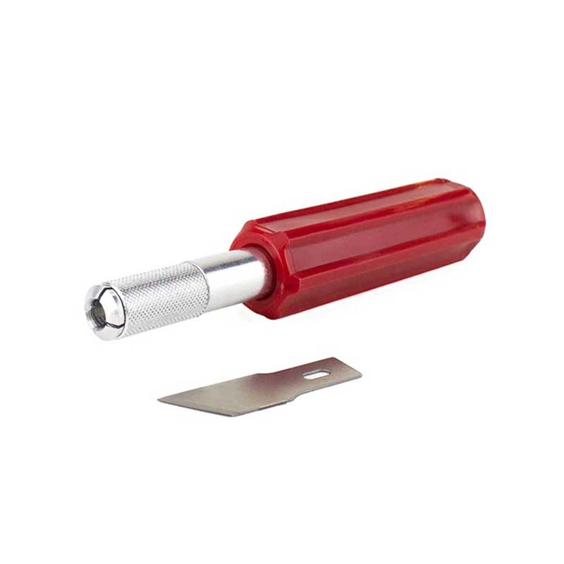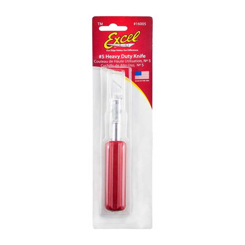 Cúter de aluminio Excel Nº5 con mango de plástico hexagonal para un mejor agarre y cabezal mecanizado con mandril para el intercambio de cuchillas.