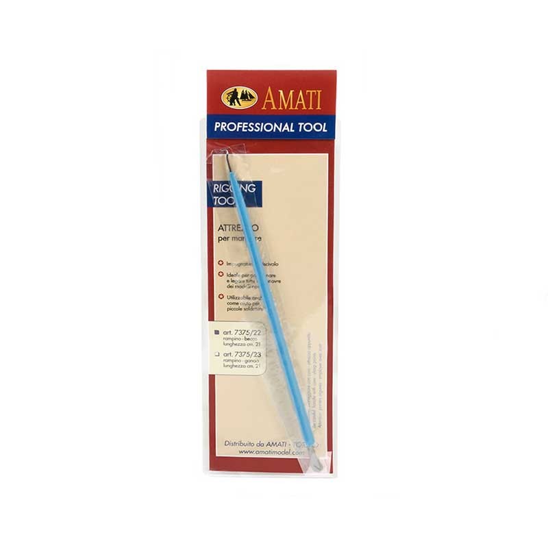 Utensilio tipo garfio diseñado especialmente para trabajar con los hilos durante la maniobra de arboladura en modelismo naval. Longitud: 21 cm.