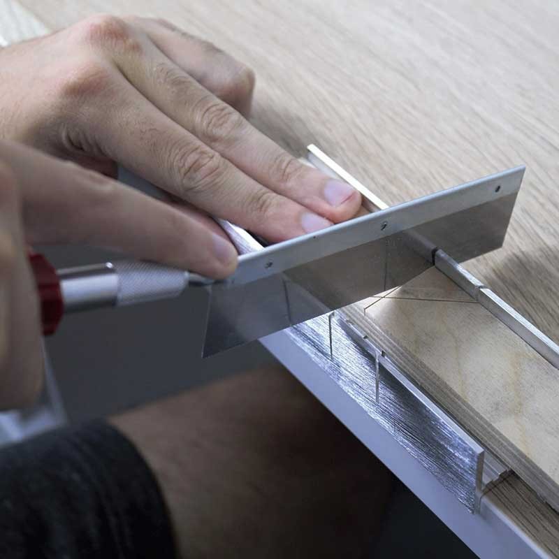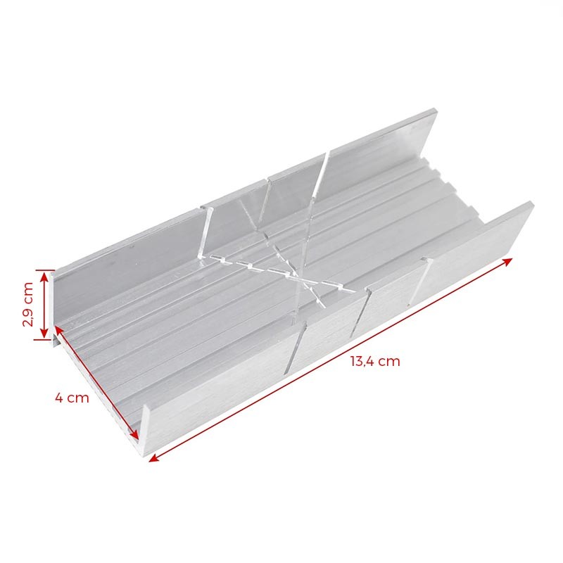 Caja de ingletes de aluminio Excel que nos permitirá realizar cortes limpios en listones de madera u otros materiales en ángulos de 45º o 90º de forma rápida.