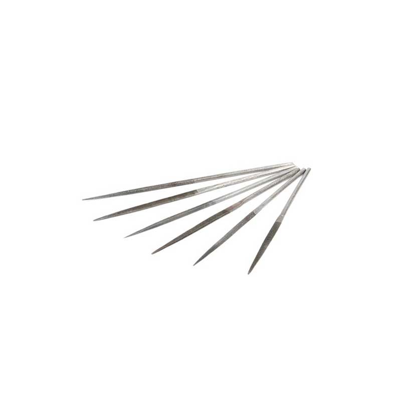 Juego de 6 limas de aguja de diferentes grosores y formas para trabajar madera. Indispensables modelismo naval. Longitud de las limas: 14 cm.