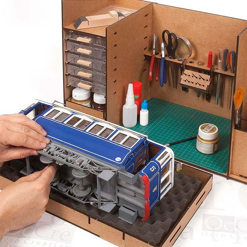 El mueble taller organizador de Occre es un elemento imprescindible para cualquier modelista en el proceso de montaje y armado de la maqueta.