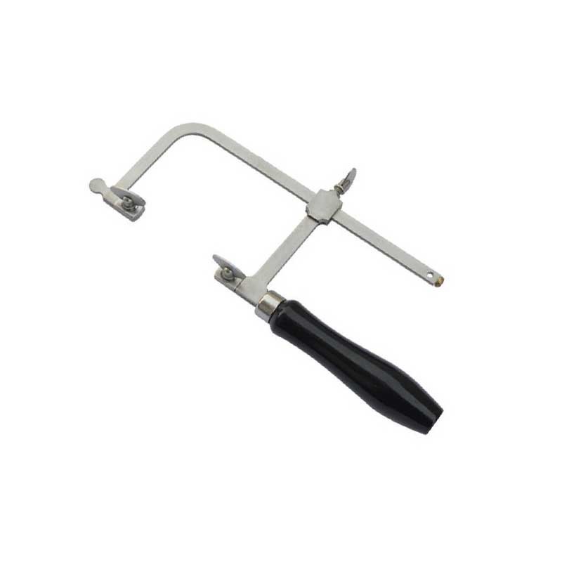 Sierra de arco de acero ajustable hasta 15 cm máximo con mango de plástico de 10 cm para trabajos de modelismo.