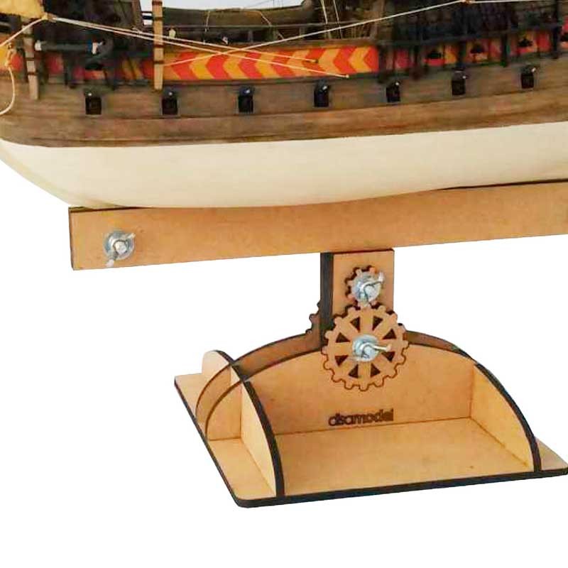 Soporte articulado de madera para modelismo naval diseñado para la sujeción del casco del barco desde la quilla durante su construcción.