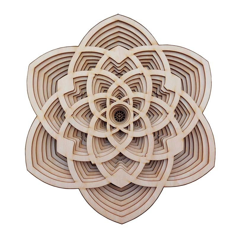 Maqueta de madera de un mandala hecha de contrachapado de tilo cortado a láser listo para ensamblar.