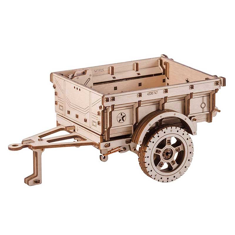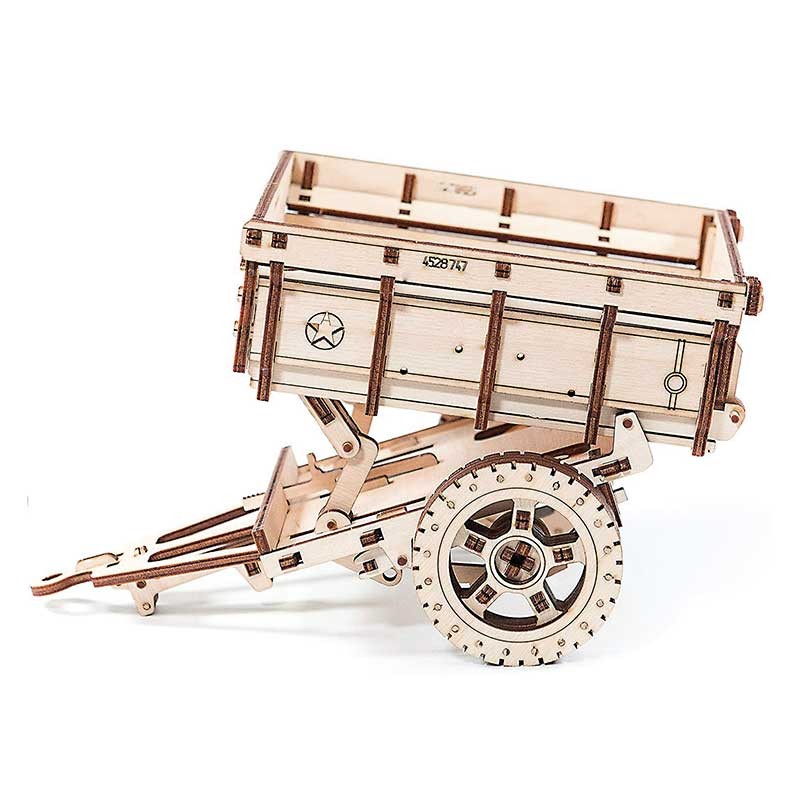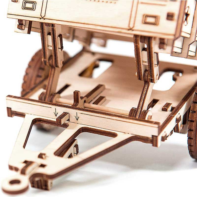 Modelo mecánico 3D para construir un remolque para el vehículo 4x4 a partir de piezas de madera contrachapada de abedul de gran calidad.