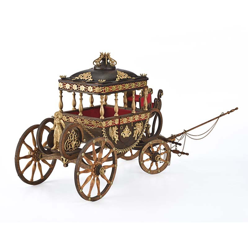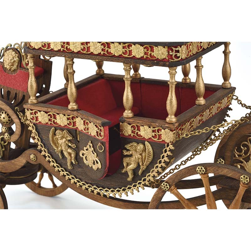 Maqueta de madera en kit de una carroza de 1819 inspirada en el estilo egipcio a escala 1:24. Incluye accesorios y decoraciones varias.