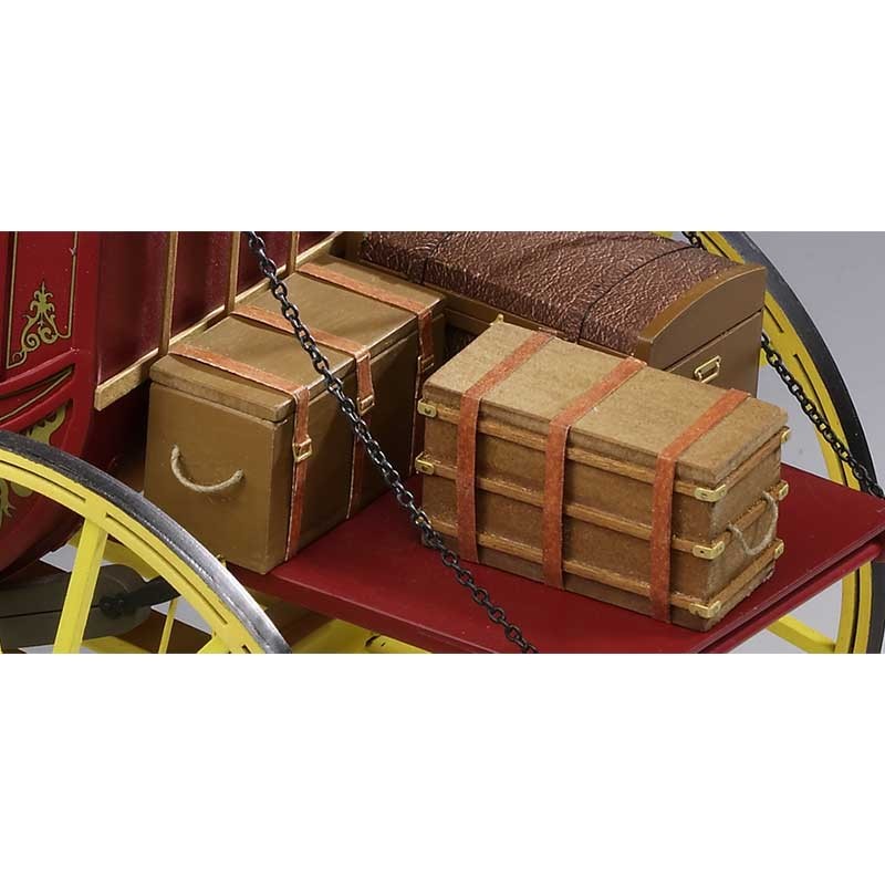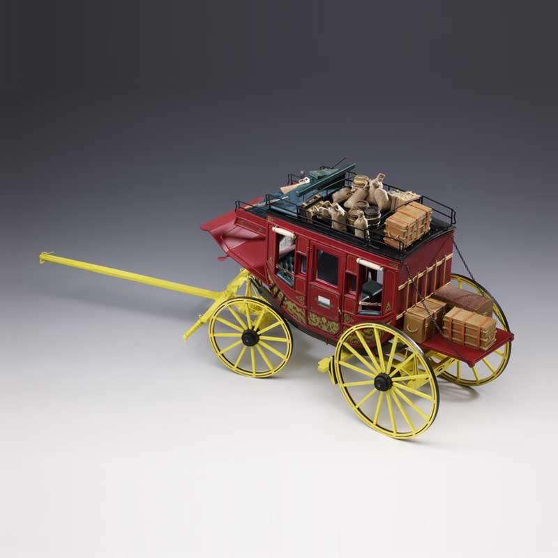 Este es un magnífico y detallado kit a escala de una diligencia americana como las utilizadas durante la época del salvaje y lejano Oeste.