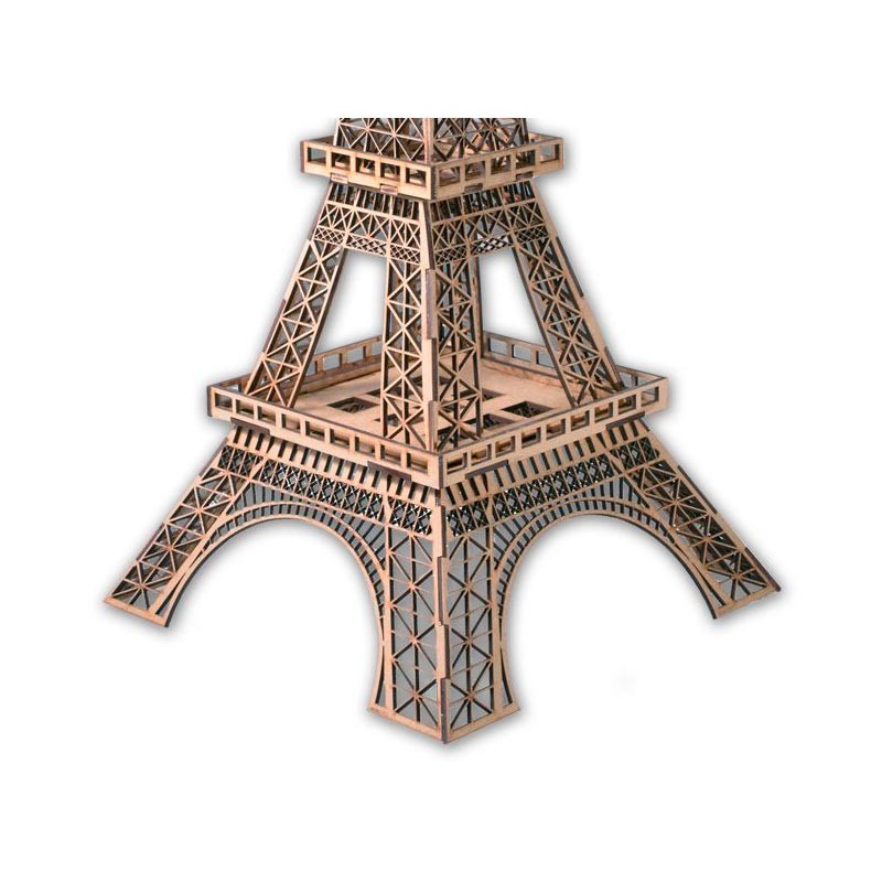 Maqueta en kit de la Torre Eiffel con 30 piezas de madera DM de alta calidad. Diseño cuidado para que cada pieza encaje con precisión.