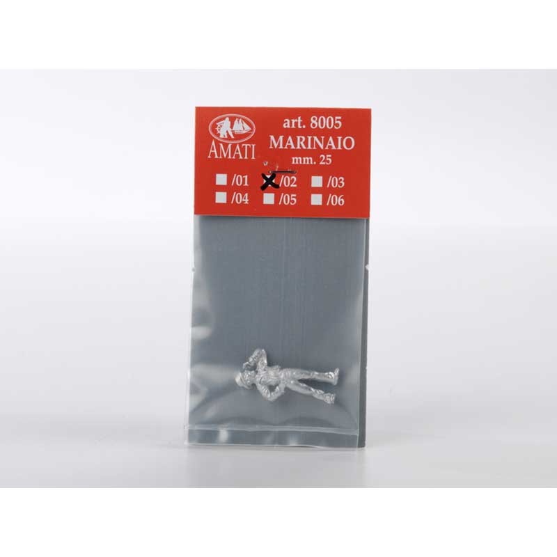 Figura modelo 1 en miniatura para modelismo naval de un marinero de 25 mm en metal con acabado natural para ser decorado al gusto.
