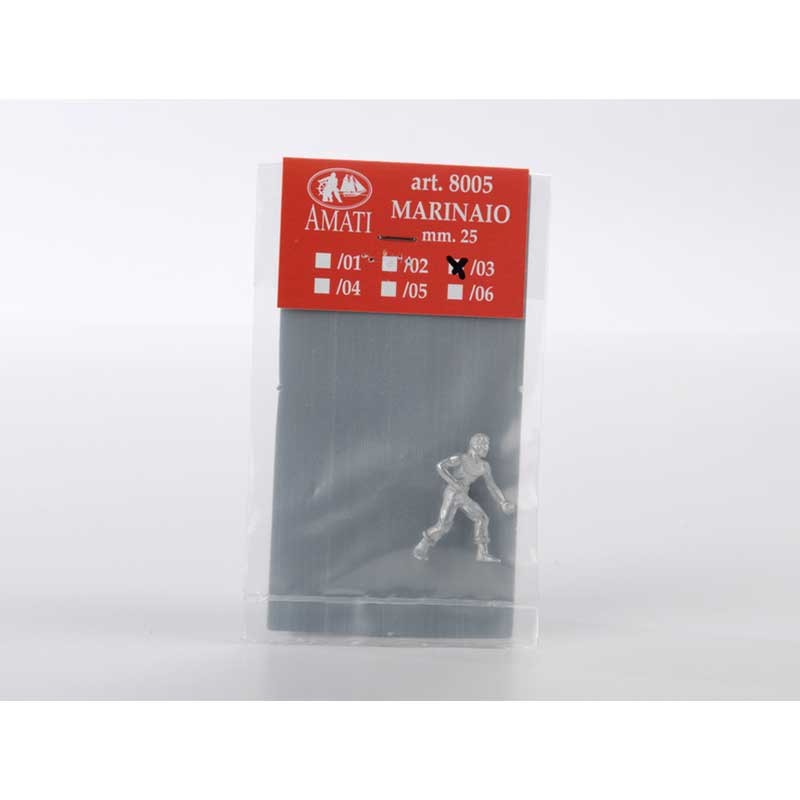 Figura modelo 2 en miniatura para modelismo naval de un marinero de 25 mm en metal con acabado natural para ser decorado al gusto.